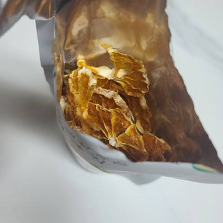 吃的东西都觉得太油腻了可以来一片酸酸甜甜清爽的济州橘子片,感受济州岛独特的橘子片的味道,是0负担可以健康享用的营养零食。如果看它的calories 一包才79kcal。太美味了,不知不觉中你就会吃完整袋!